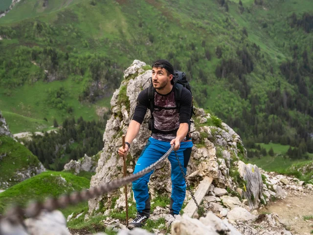 L’itinéraire offre une randonnée riche, et tout terrain, allant du simple sentier aux rocailles ainsi qu’à la roche. La première partie emmène les randonneurs sur des sentiers en forêts, entre les sapins, avant d’arriver aux Chalets d’Oche. La dernière partie est équipée de chaînes et de câbles pour franchir la cheminée et le sommet.