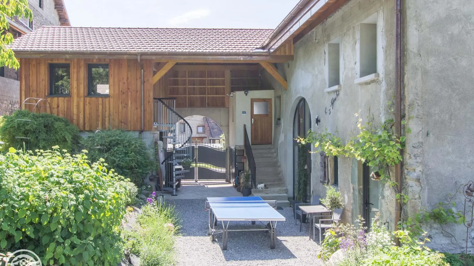 Tuin met tuinmeubelen, parasol, barbecue, ligstoelen. Op het terrein, 2e tuin gedeeld met de eigenaren (uitzicht op het meer van Genève, de Jura en Zwitserland), tafeltennis. Binnenplaats, eigen parkeerplaats op het terrein. Binnenplaats onder videobewaking.