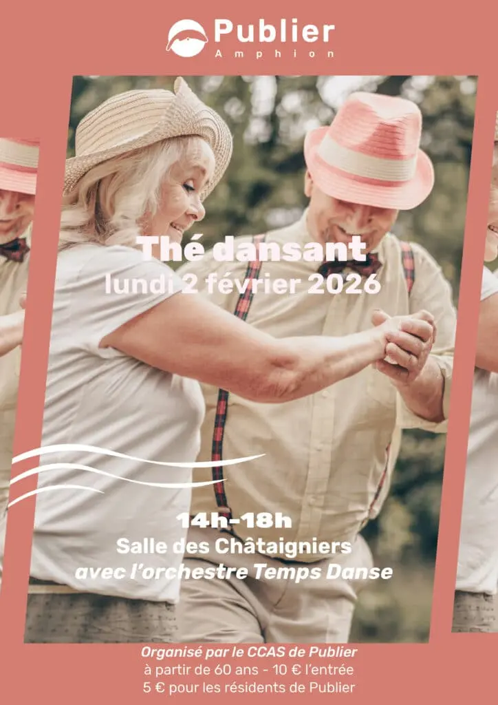 Publier's CCAS organiseert een theedans op maandag 2 februari van 14.00 tot 18.00 uur in de Salle des Châtaigniers, met muziek van het Temps Danse orkest.