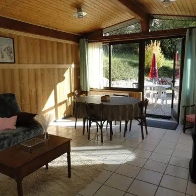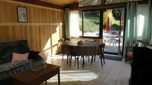 - Salon-Salle à manger sous véranda, donnant sur terrasse côté sud, d’où vous pouvez arriver à ski.
