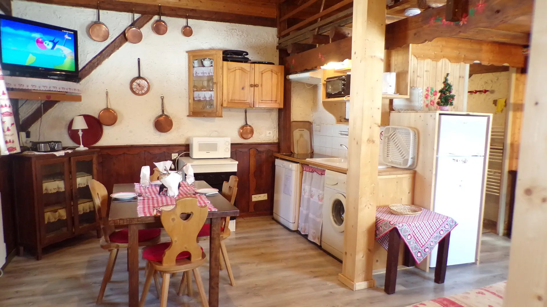 *Coin cuisine :évier 1 bac, mini four et grand four, 4 plaques en vitrocéramique, micro-ondes, réfrigérateur 220 litres avec congélateur, lave vaisselles et lave linges, cafetière, bouilloire électrique, grille pains, batteur, autocuiseur, appareils à fondue et à raclette, vaisselle et batterie de cuisine pour 4/5 personnes, table,chaises