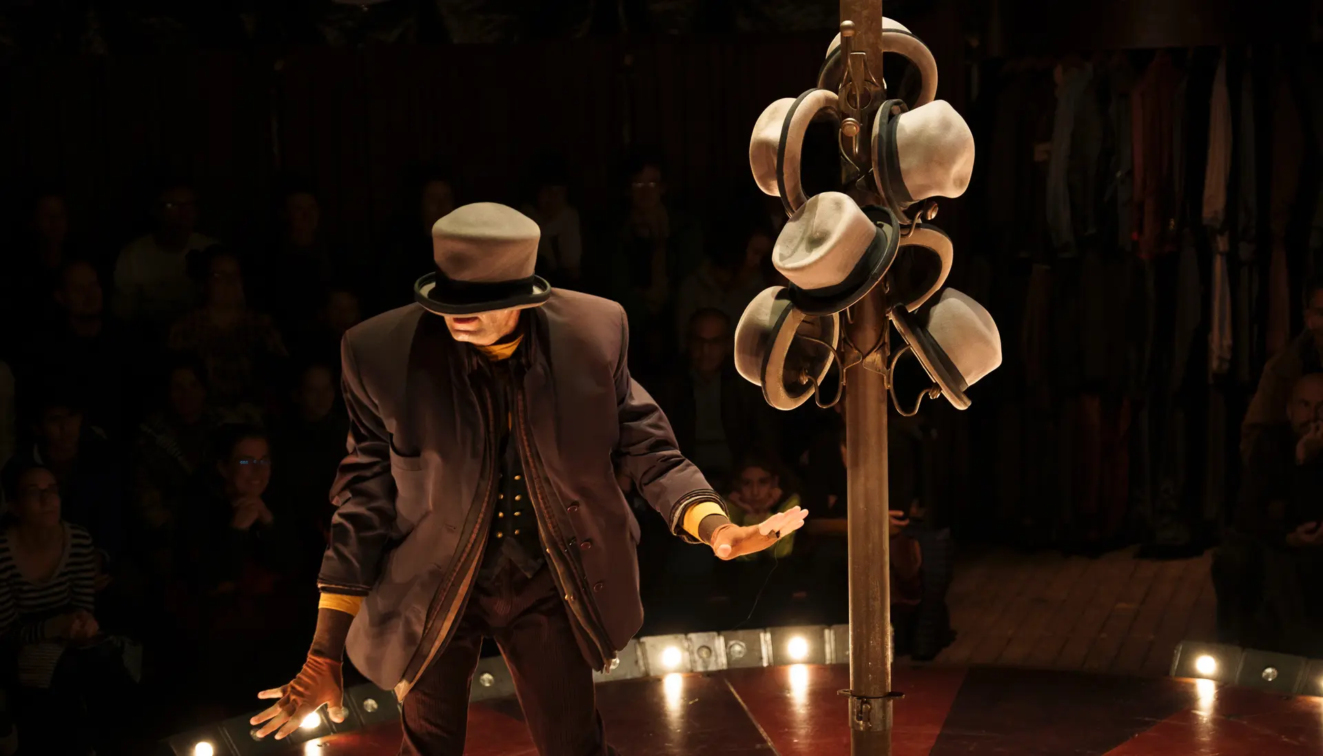 Après l’envoûtant spectacle Bêtes de Foire, voilà un nouveau rêve éveillé de Laurent Cabrol et Elsa De Witte. Si lui, cofondateur du Cirque Trottola, s’est nourri d’expériences circassiennes, elle, costumière et comédienne, vient du théâtre de rue. Leurs spectacles sont à leur image, un savant mélange de cirque, de marionnettes et de théâtre. Cette nouvelle pièce lance quatre flâneurs dans l’exploration d’un vestiaire miraculeux. Au centre de la piste, ou suspendus dans les airs, décor, fringues, couvre-chefs, chaussures et objets en tout genre font naître des personnages évoquant avec poésie les petites choses de la vie. Les chapeaux s’emmêlent, les redingotes s’envolent, les corps flottent et swinguent… Ce cirque forain, fait de bric et de broc, s’avère aussi touchant que fascinant. Tout en invention et fantaisie, il pourrait bien décrocher la lune.