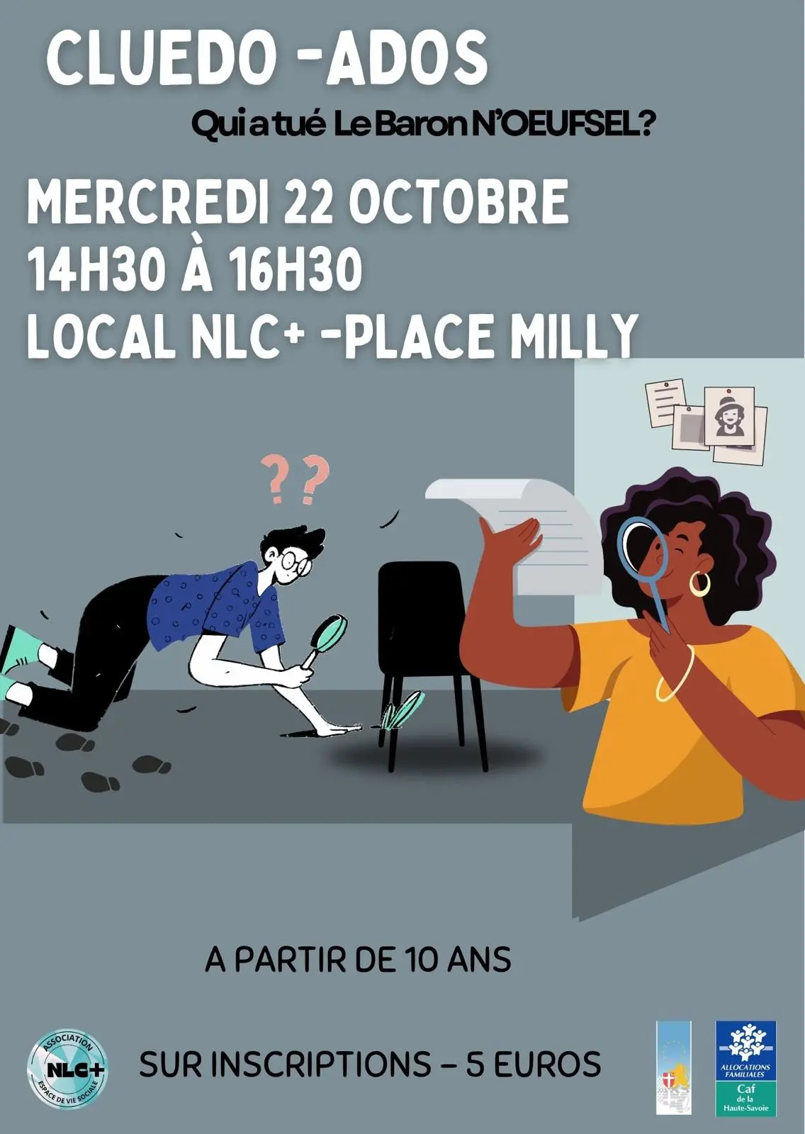 Qui a tué le Baron N’OEUFSEL ? Viens percer le mystère le mercredi 22 octobre de 14h30 à 16h30 au local NLC+, place de Milly.