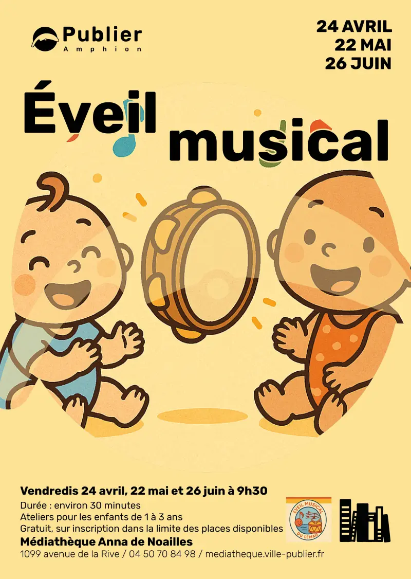 La médiathèque organise un atelier d'éveil musical pour les petits avec Agnieszka de l'Eveil Musical du Léman !