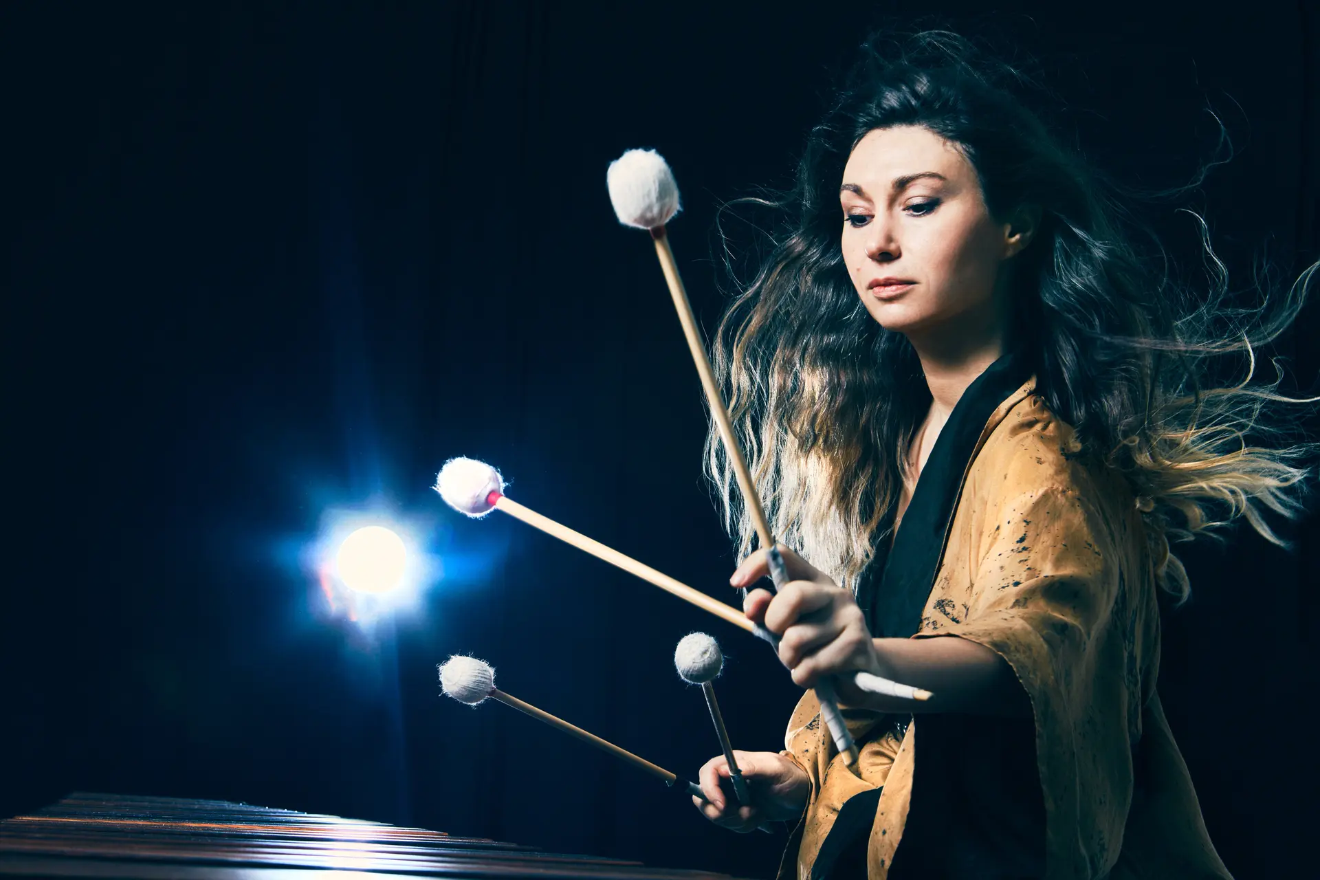 À travers son solo, le marimba devient tour à tour orchestre, voix intime et terrain d’expérimentation ou improvisation. Entre finesse des nuances, énergie rythmique et liberté d’interprétation, elle révèle toute la richesse expressive de ses instruments. Un moment suspendu, où la percussion se fait poésie et puissance.