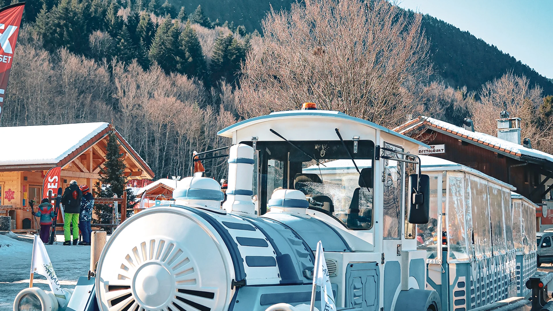 Original et pratique, le cœur du village est relié aux pieds des pistes toute la journée par le petit train de Bernex, une expérience à lui tout seul pour les vacanciers.
